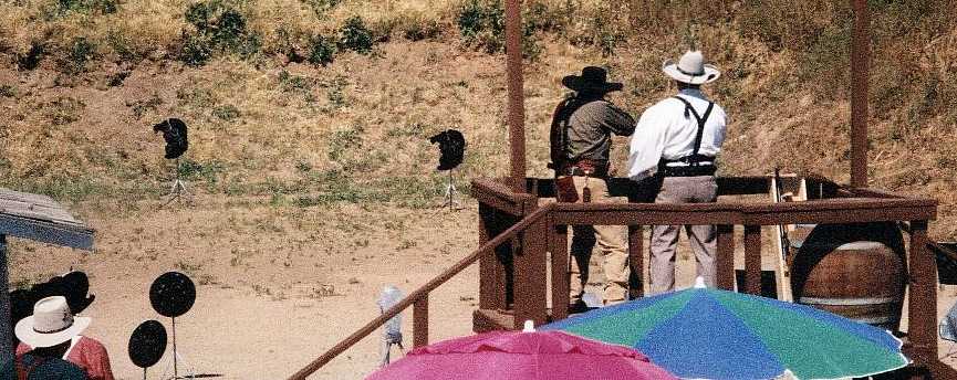 Outlaw Annie (Colt rep and champion mounted shooter) with a guy who goes around to these events pretending to be Phil Spangenberger.